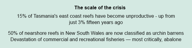 The Longspined Sea Urchin(Centrostephanus rodgersii) is one of the most ecologically destructive marine pests in southeastern Australia. Its population has exploded to an estimated 20million individuals — creating vast 'urchin barrens' where once-thriving kelp forests stood.